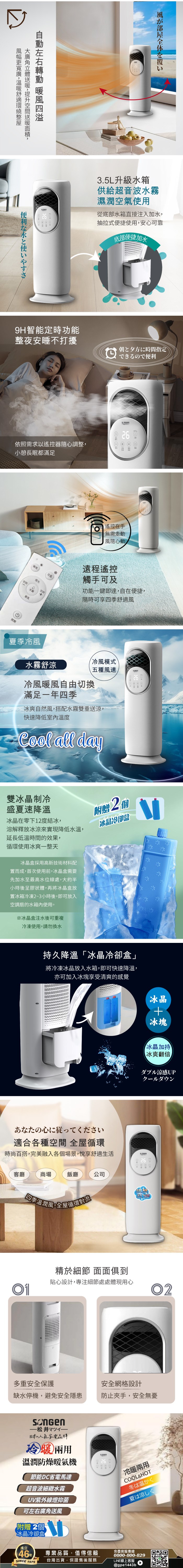 取暖+涼爽,冷暖兩用四季皆宜 低噪音節能省電DC直流風扇 超音波細緻水霧,雙重送暖防乾燥 UV紫外線燈+LED氛圍燈,淨化抑菌 9小時定時功能,舒適入眠 自動左右轉動,廣角送暖