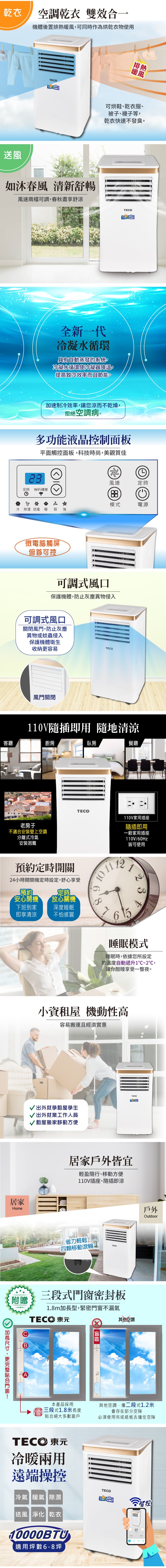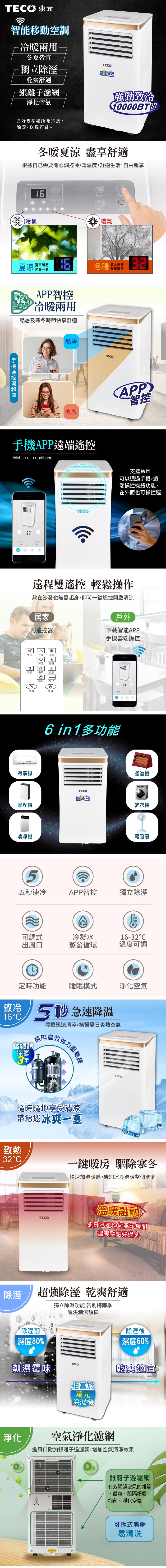 【TECO東元】10000BTU智能型冷暖除溼淨化移動式冷氣機